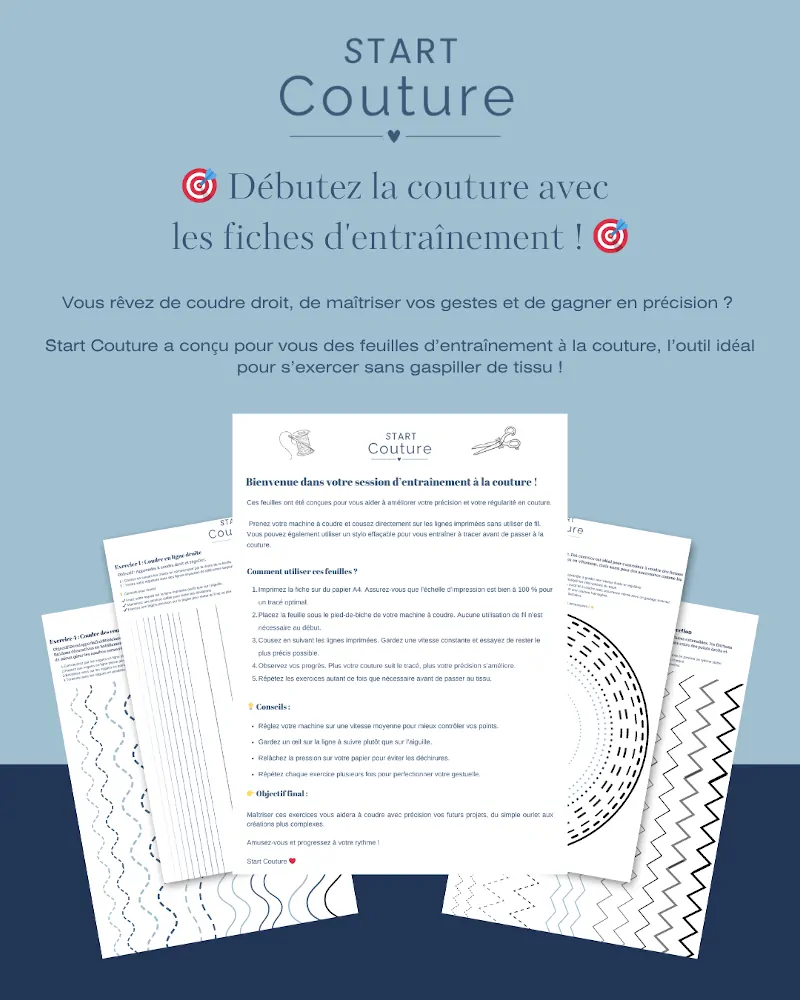 Découvrez mes fiches d’entraînement à la couture, conçues pour vous aider à perfectionner vos gestes et améliorer votre précision.